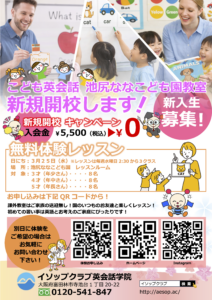 🌸 2026年4月 新規開講のお知らせ 2026年4月より、 池尻ななこども園さんの課外教室として、 イソップこども英会話 ...