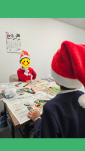 幼児クラスは楽しいゲームやその他アクティビティ、小学生クラス以上のジュニアクラスと中学生クラスはクリスマスクラフトをします!